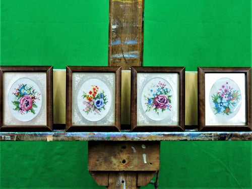 MXB Crafts - Cross-Stitch - Framed Floral Designs x 4